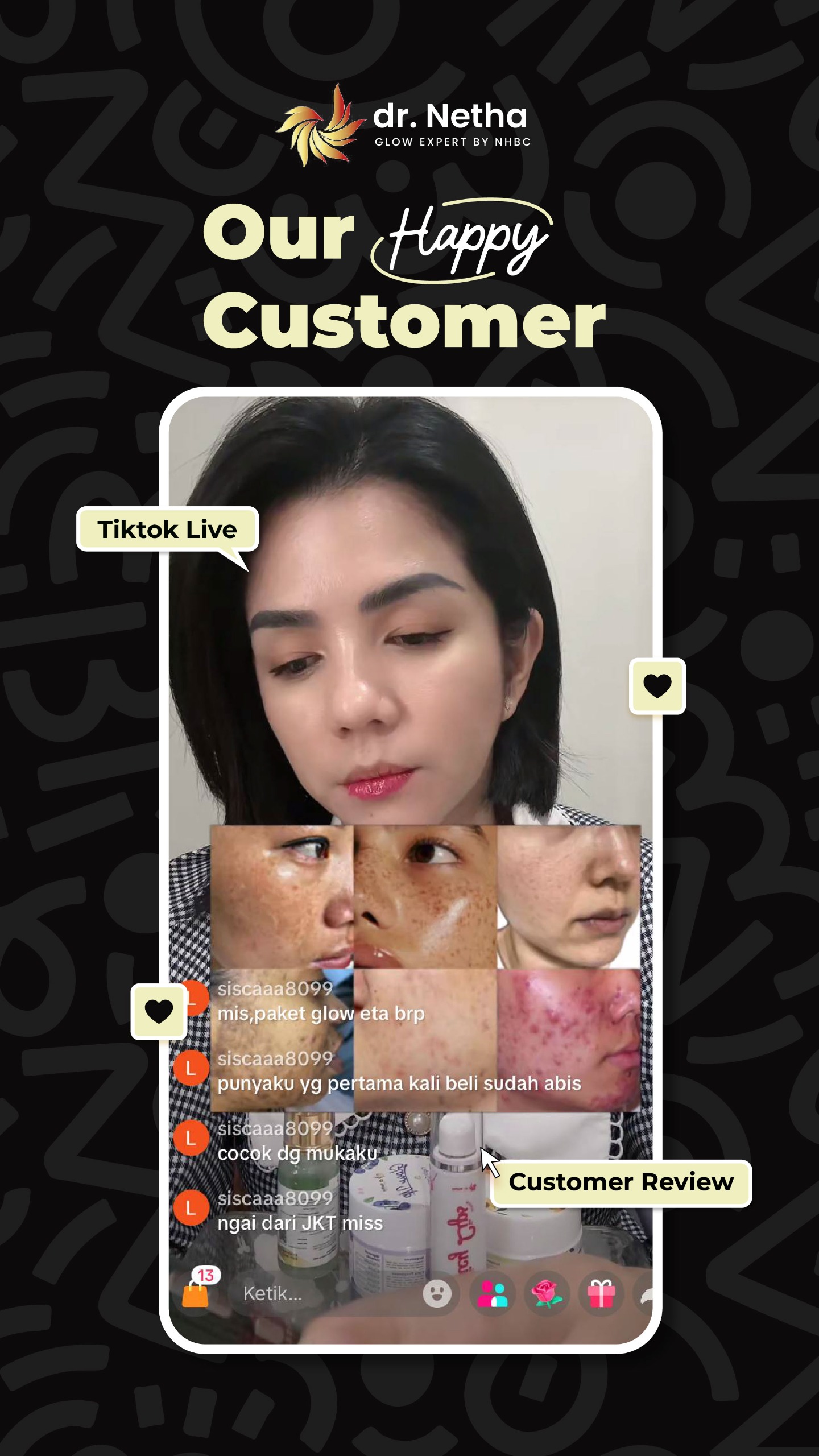 Ribuan pelanggan telah membuktikan hasil nyata dari perawatan dr. Netha Glow Expert. Berikut adalah beberapa cerita sukses mereka.